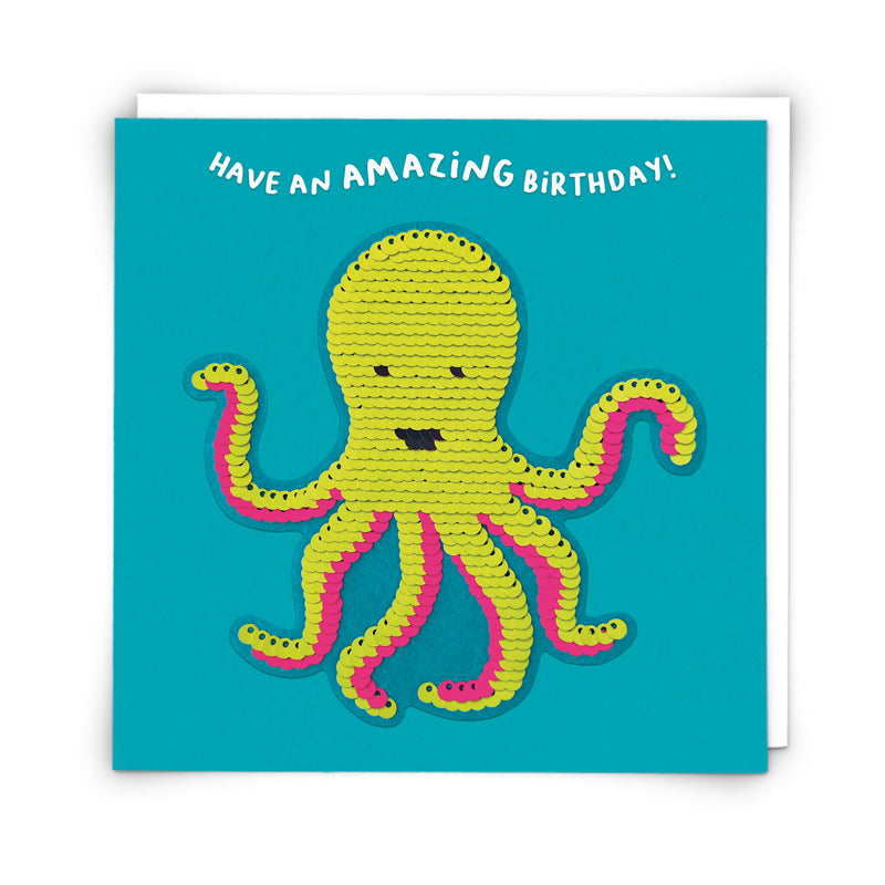 Amazing Birthday Octopus Sequin Patch Card