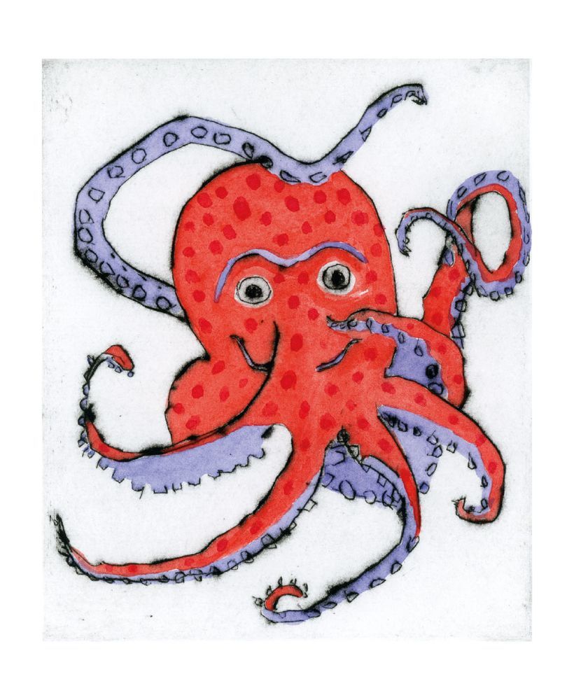 Octopus Dance by Richard SpareDrypoint and watercolour