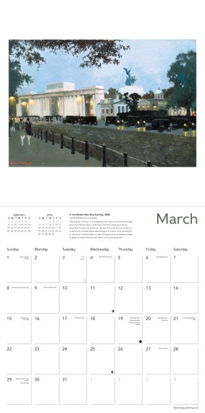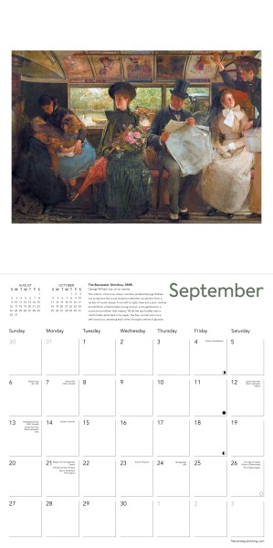 Informative text accompanies each work and the date pad features previous and next month’s views.