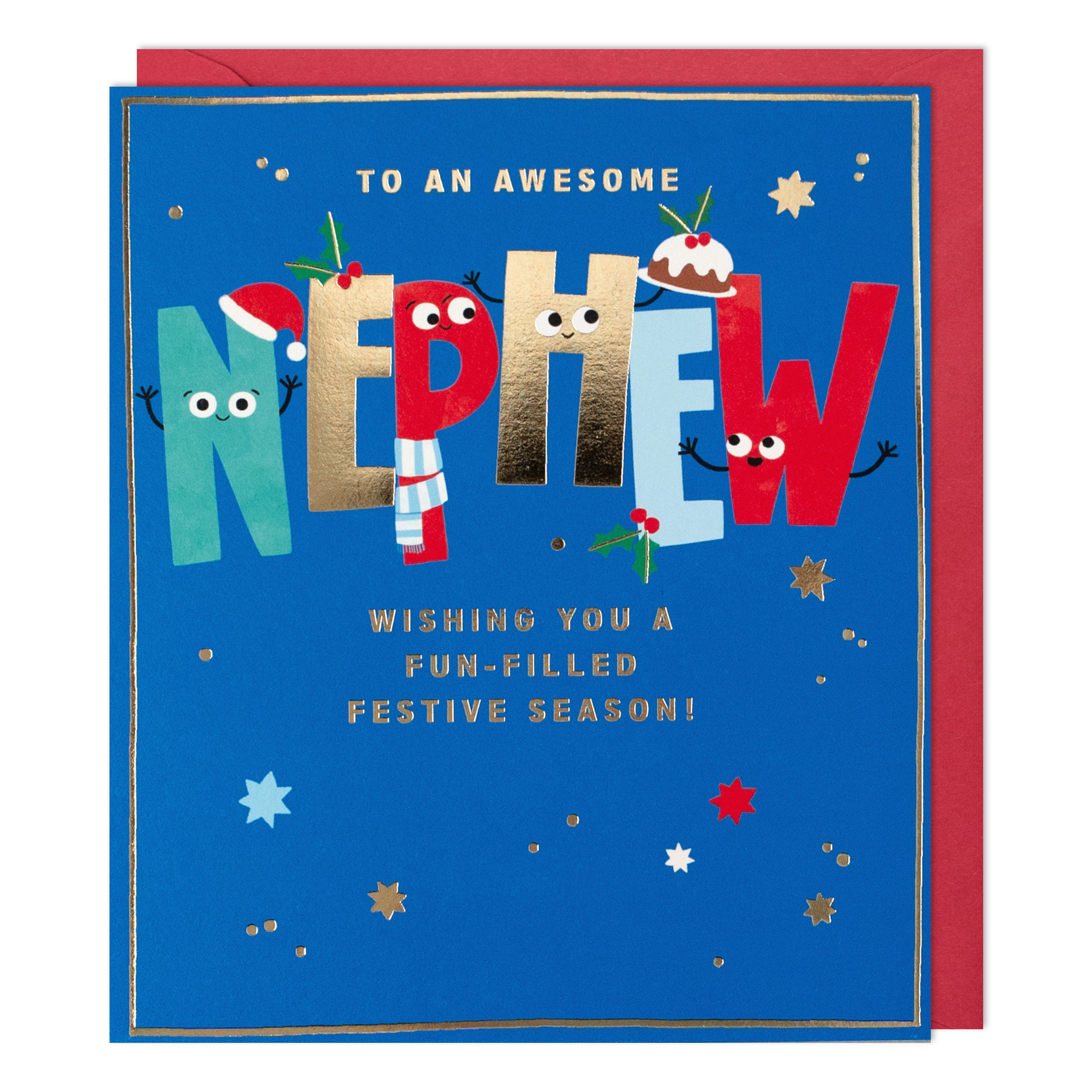 - Front reads: To an Awesome Nephew Wishing You a Fun-Filled Festive Season!