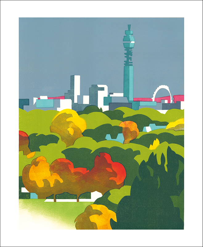 Paul Catherall is a London based printmaker and illustrator, renowned for his bold linocuts of architectural landmarks. He has created illustrations for well-known books such as The Cloudspotter’s Guide as well as limited edition works for the Southbank Centre and a series of high profile posters for London Underground. Combining an expert eye for composition and colour with consummate draughtmanship, he creates his prints entirely by hand in a painstaking relief process that takes several weeks to complete.