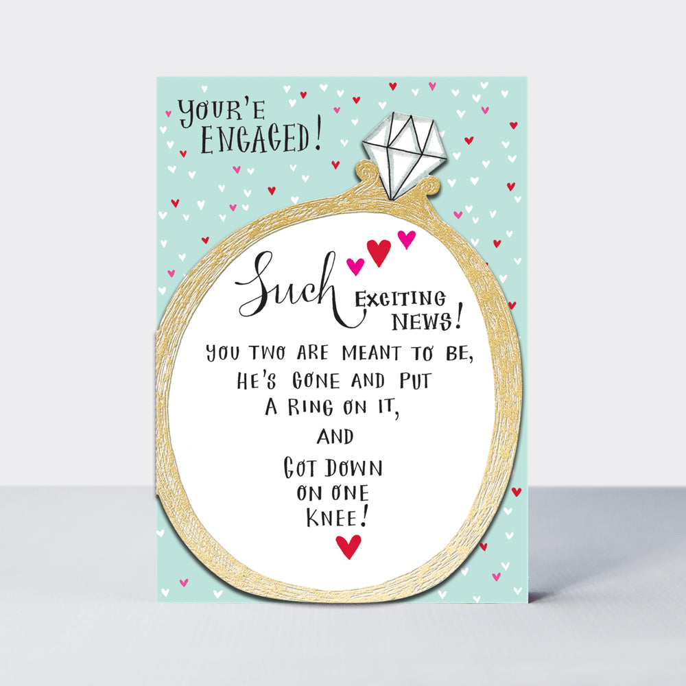 • Front reads: You're Engaged! Such Exciting News! You Two Are Meant To Be, He's Gone And Put A Ring On It And Got Down On One Knee!