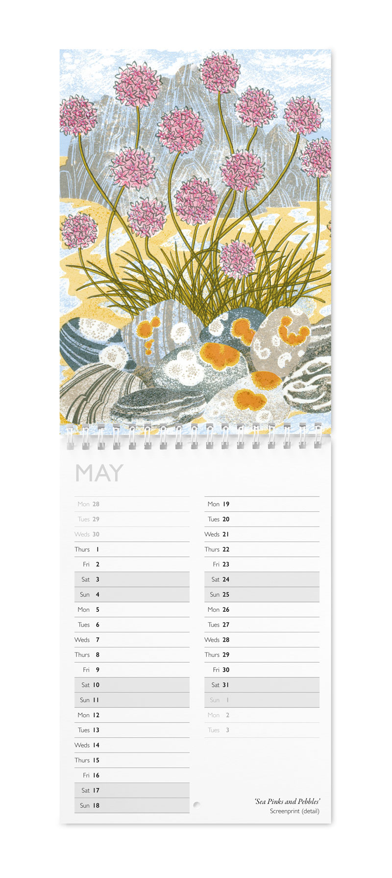 Angie Lewin creates limited edition linocut, wood engraving, lithograph and screen prints – often inspired by skeletal plant forms seen against the sea and sky of North Norfolk and the Scottish Highlands. She is a member of the Royal Society of Painter-Printmakers and of The Society of Wood Engravers.