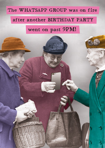 - Front reads: The Whatsapp Group Was On Fire After Another Birthday Party Went On Past 9pm!
