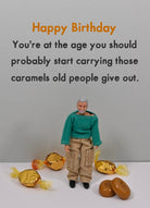 - Front reads: Happy Birthday - You're At The Age You Should Probably Start Carrying Those Caramels Old People Give Out.