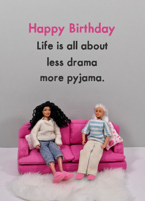 - Front reads: Happy Birthday - Life Is All About Less Drama More Pyjama