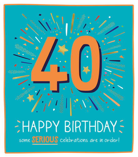 • Front reads: 40 - Happy Birthday - Some Serious Celebrations Are In Order!