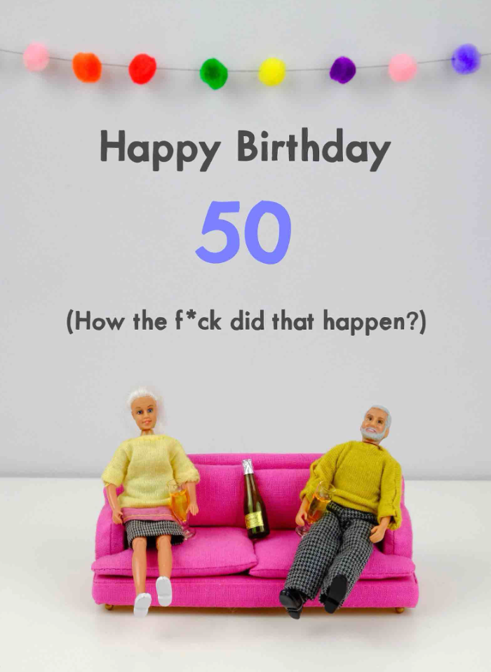 - Front reads: Happy Birthday 50 (I'd keep that shit quiet)
