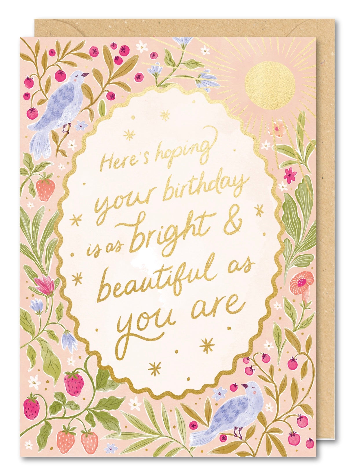 • Front reads: Here's Hoping Your Birthday Is As Bright & Beautiful As You Are