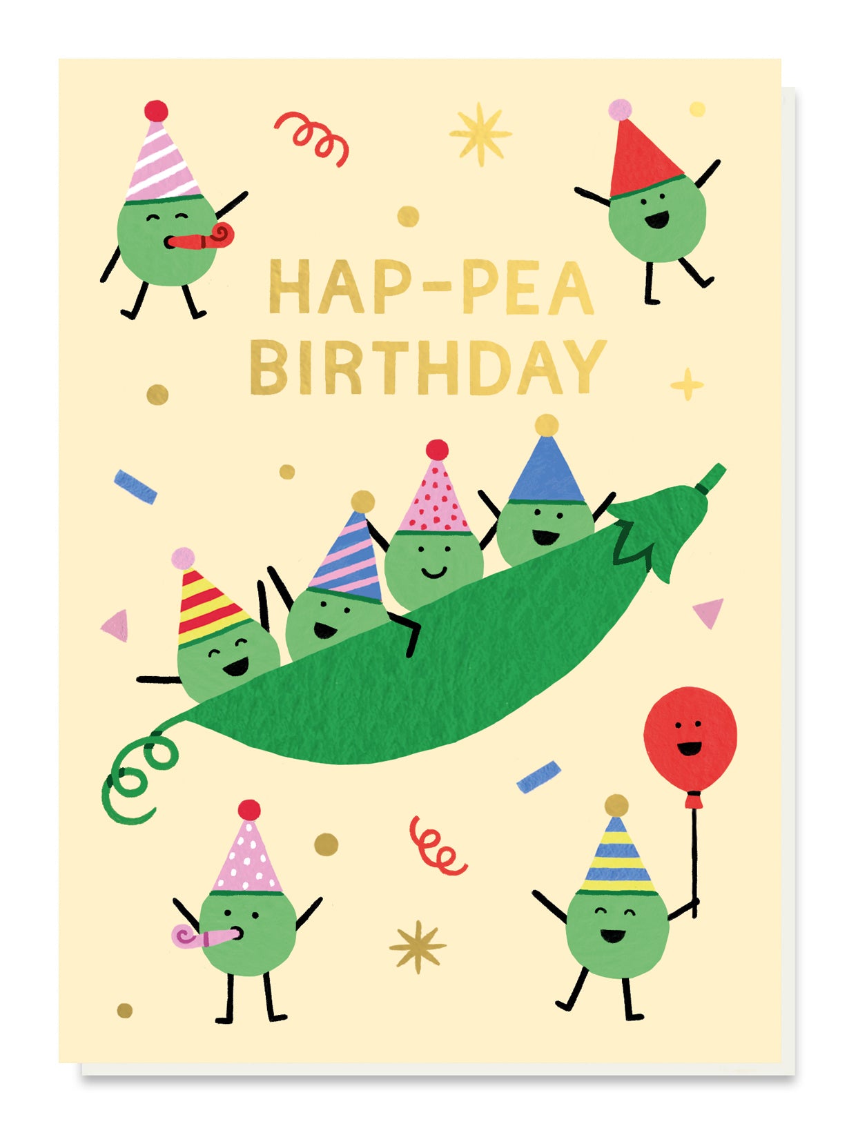 - Front reads: Hap-Pea Birthday