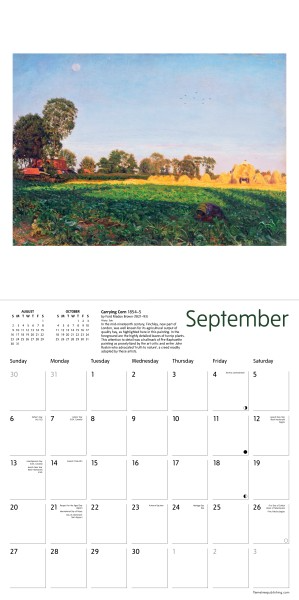 Informative text accompanies each work and the date pad features previous and next month’s views.