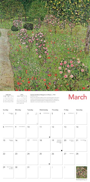 Informative text accompanies each work and the date pad features previous and next month’s views.