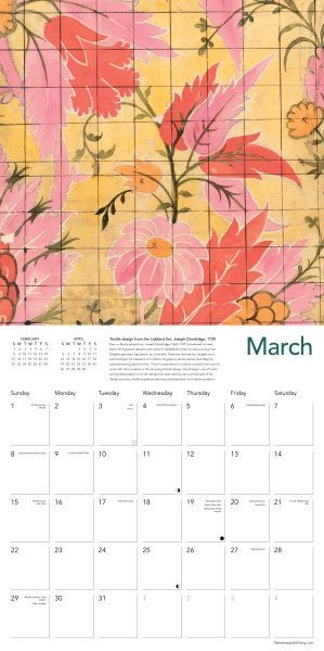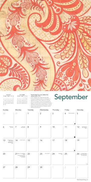 Informative text accompanies each work and the date pad features previous and next month’s views.