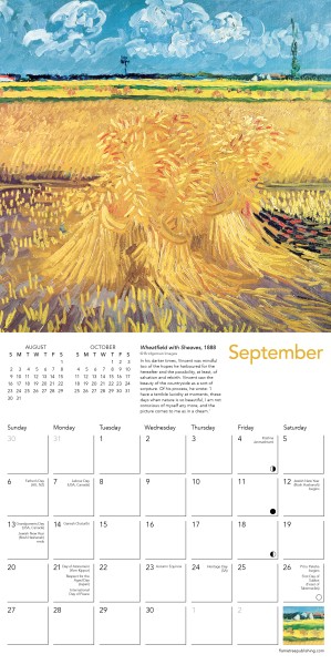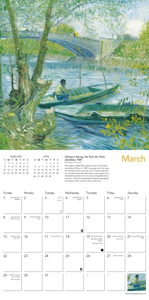 Informative text accompanies each work and the datepad features previous and next month’s views.