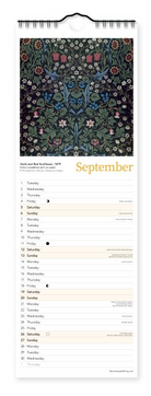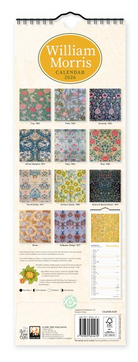 William Morris was a renowned artist, textile designer and activist. Associated with the founding of the Arts and Crafts Movement, his work has an appeal that is still felt today. This slim calendar showcases the beauty and flair of the Morris & Co aesthetic, featuring a selection of wallpapers and fabrics designed by Morris himself, as well as renowned colleagues and contemporaries such as John Henry Dearle and Arthur Heygate Mackmurdo.