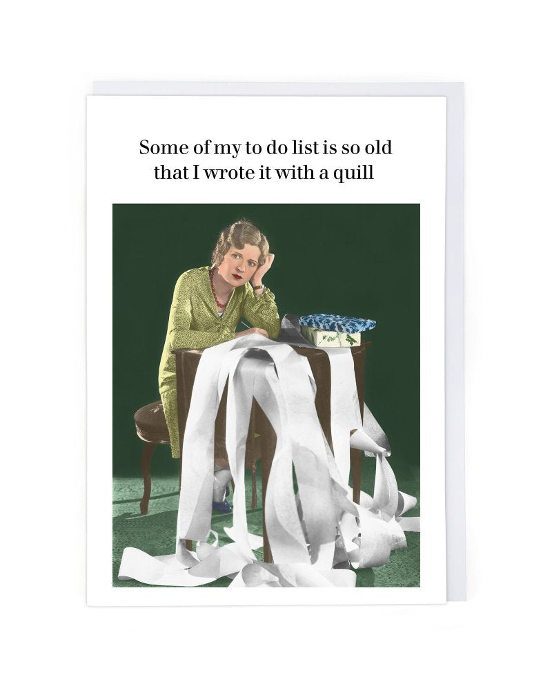 - Front reads: Some Of My To Do List Is So Old That I Wrote It With A Quill