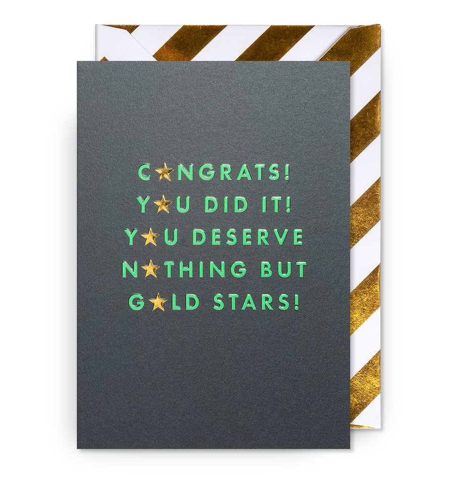 • Front reads: Congrats! You Did It! You Deserve Nothing But Gold Stars!