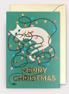 Cat With Fairy Lights Christmas Cards (5 Pack)