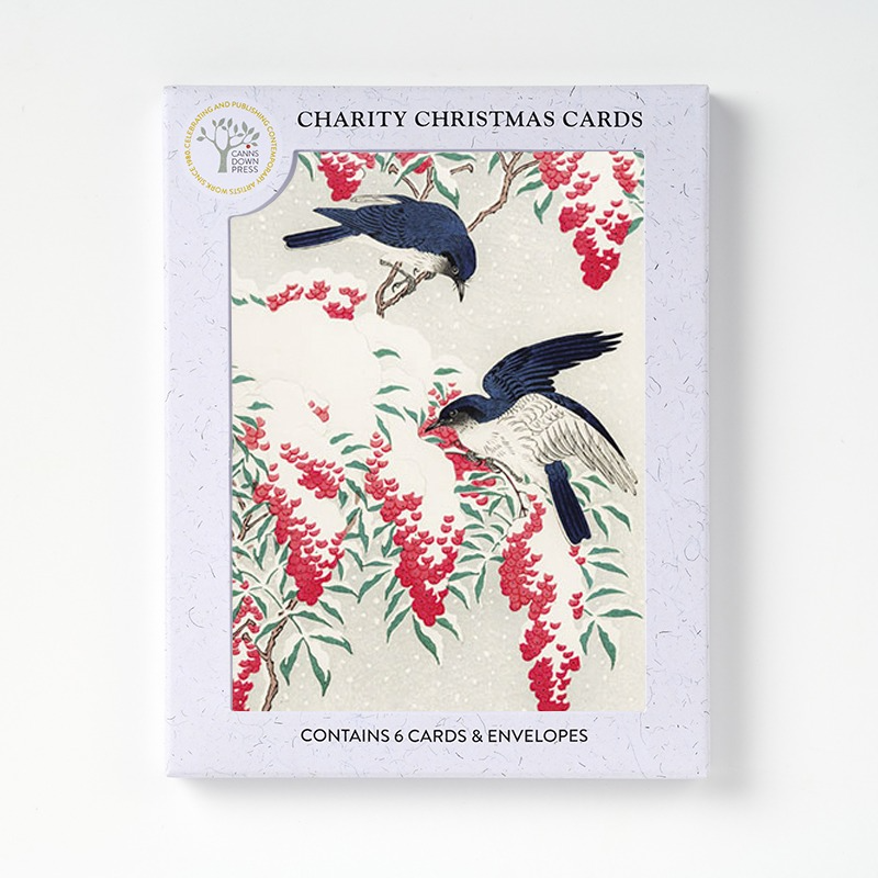 Flycatchers on Snow-covered Nandina - Pack of 6 Christmas Cards