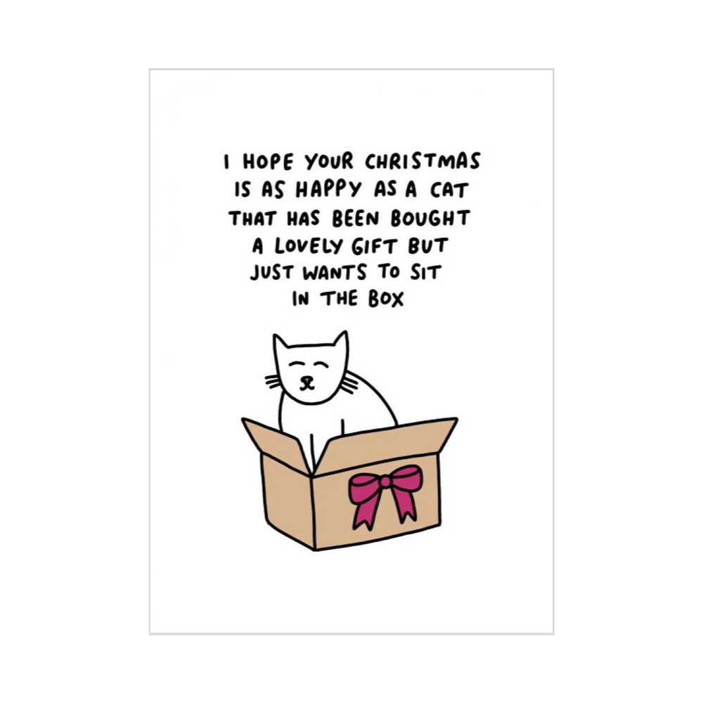 - Front Message: I Hope Your Christmas Is As Happy As A Cat That Has Been Bought A Lovely Gift But Just Wants To Sit In The Box