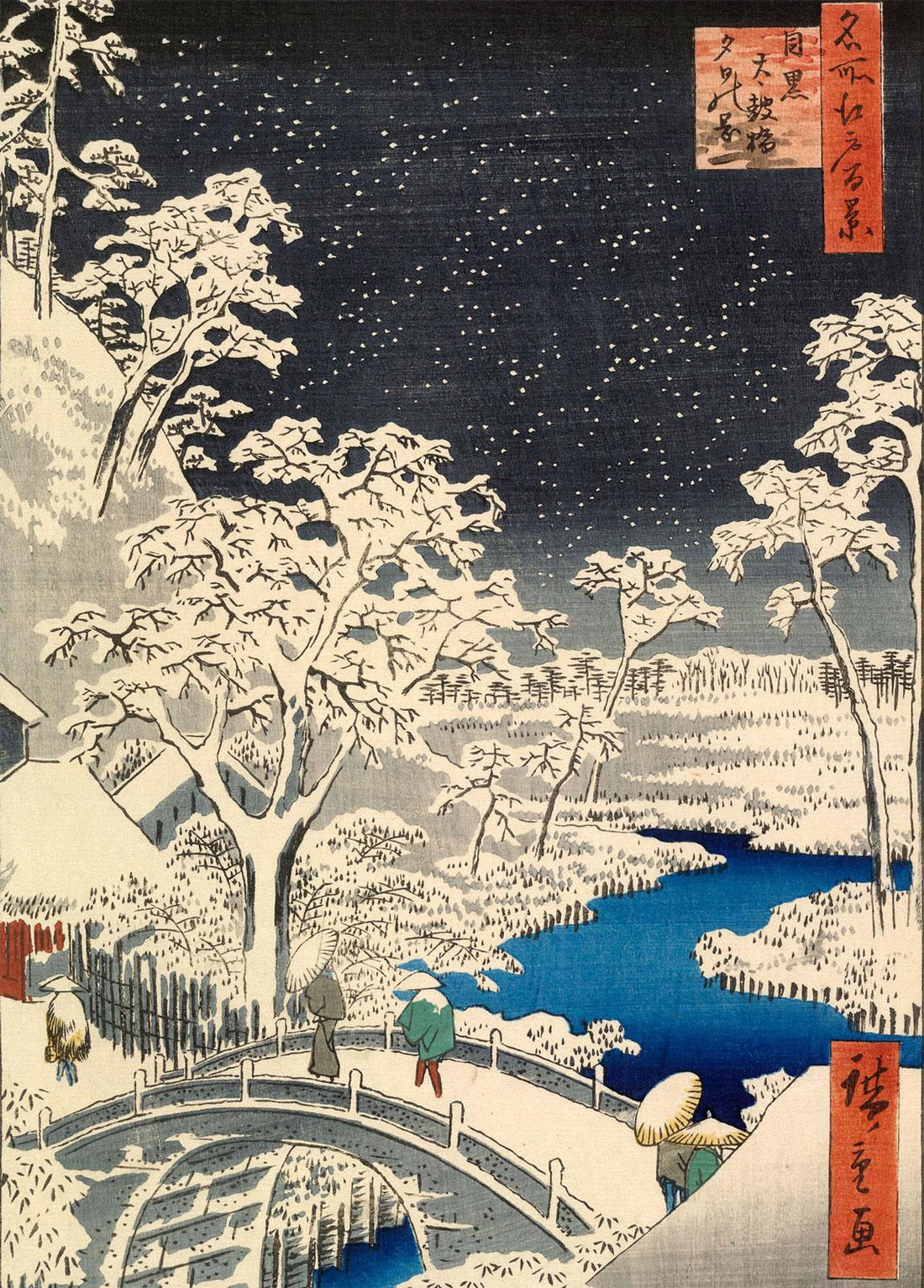 Meguro Taikobashi 1857 by Utagawa Hiroshige - taken from the series One Hundred Famous Views of Edo
