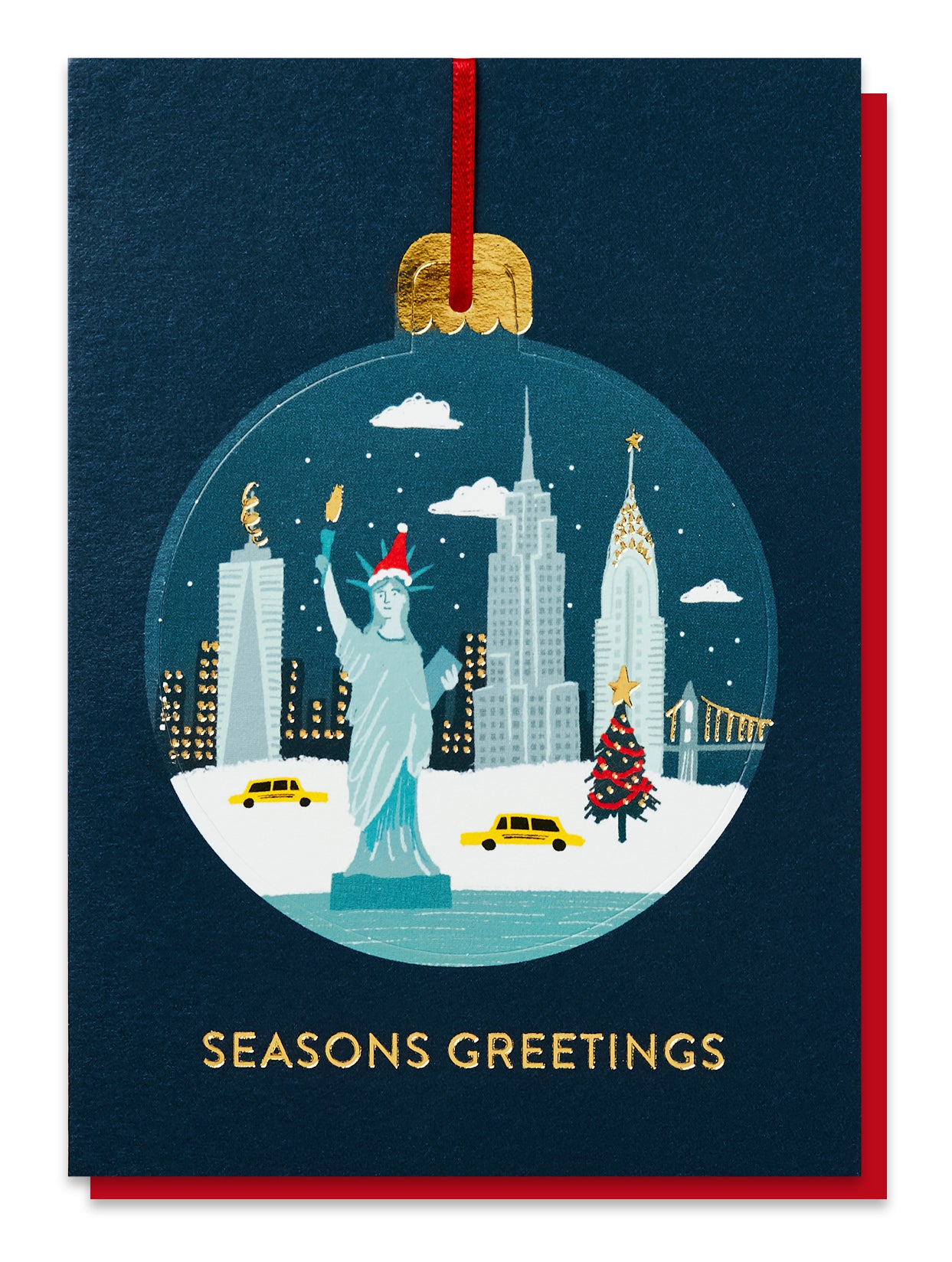 New York In The Snow - Pop-out keepsake Christmas bauble finished with gold foil