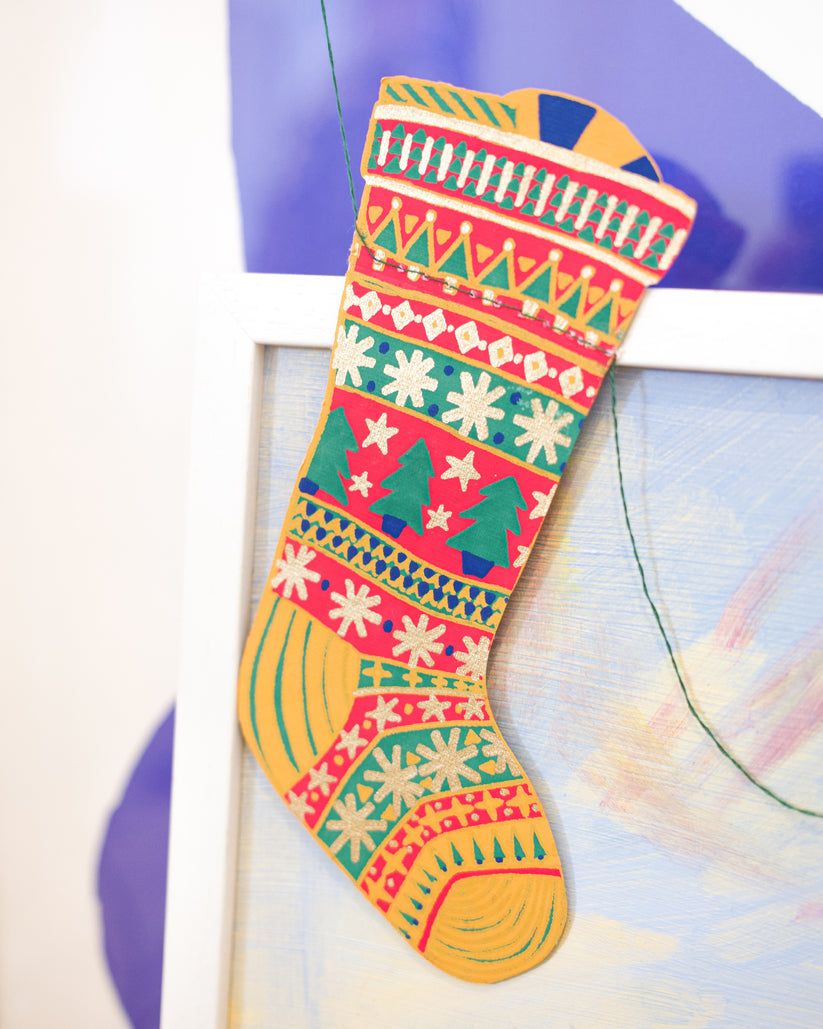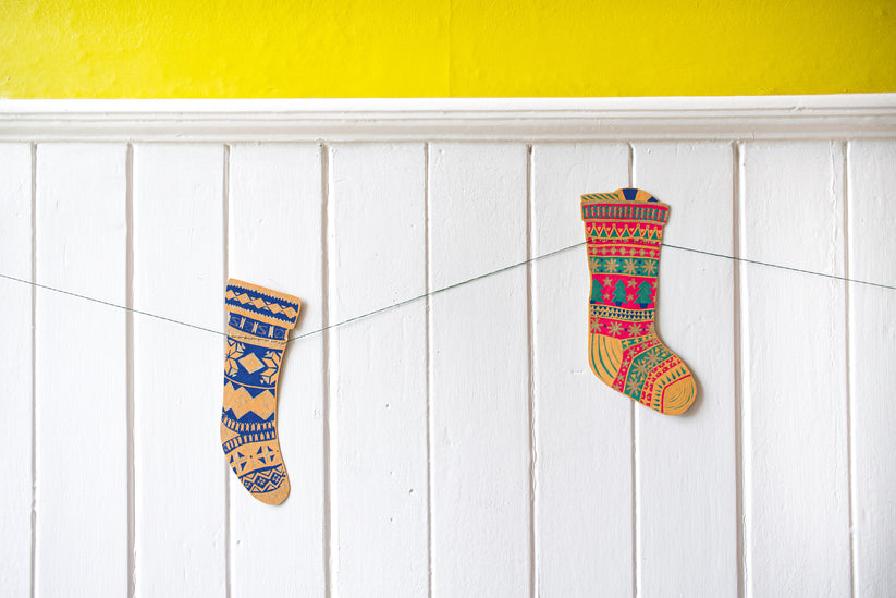 Festive Stockings Hand Printed Sewn Garland