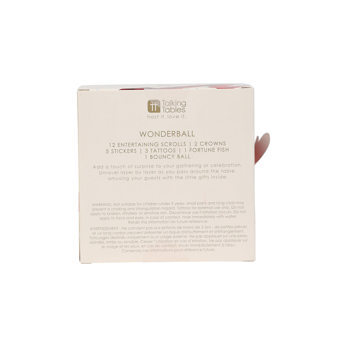 A festive twist on pass the parcel, this Santa-shaped wonderball is packed with laughs, challenges and surprises. Layer by layer, guests unwrap scrolls with jokes, trivia and mini games, plus small treats like stickers, party crowns and tattoos. It’s designed to bring joyful moments to the table