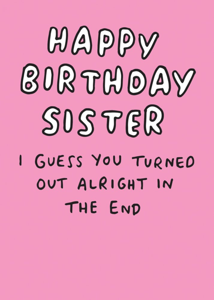 • Front Message: Happy Birthday Sister - I Guess You Turned Out Alright In The End