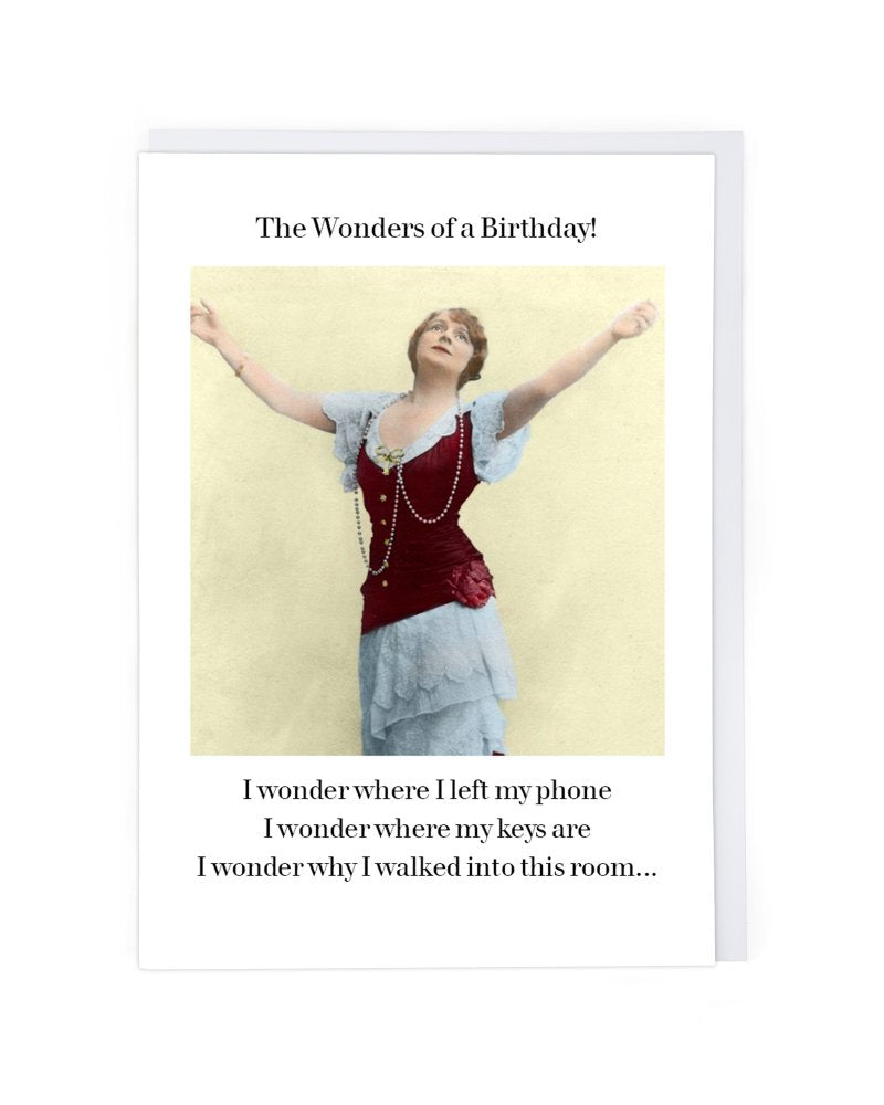 • Front reads: The Wonders of a Birthday! I wonder where I left my phone, I wonder where my keys are, I wonder why I walked into this room...