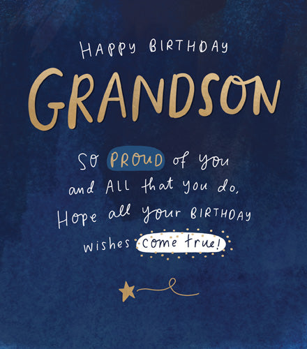 - Front reads: Happy Birthday Grandson - So Proud Of You And All That You Do, Hope All Your Birthday Wishes Come True