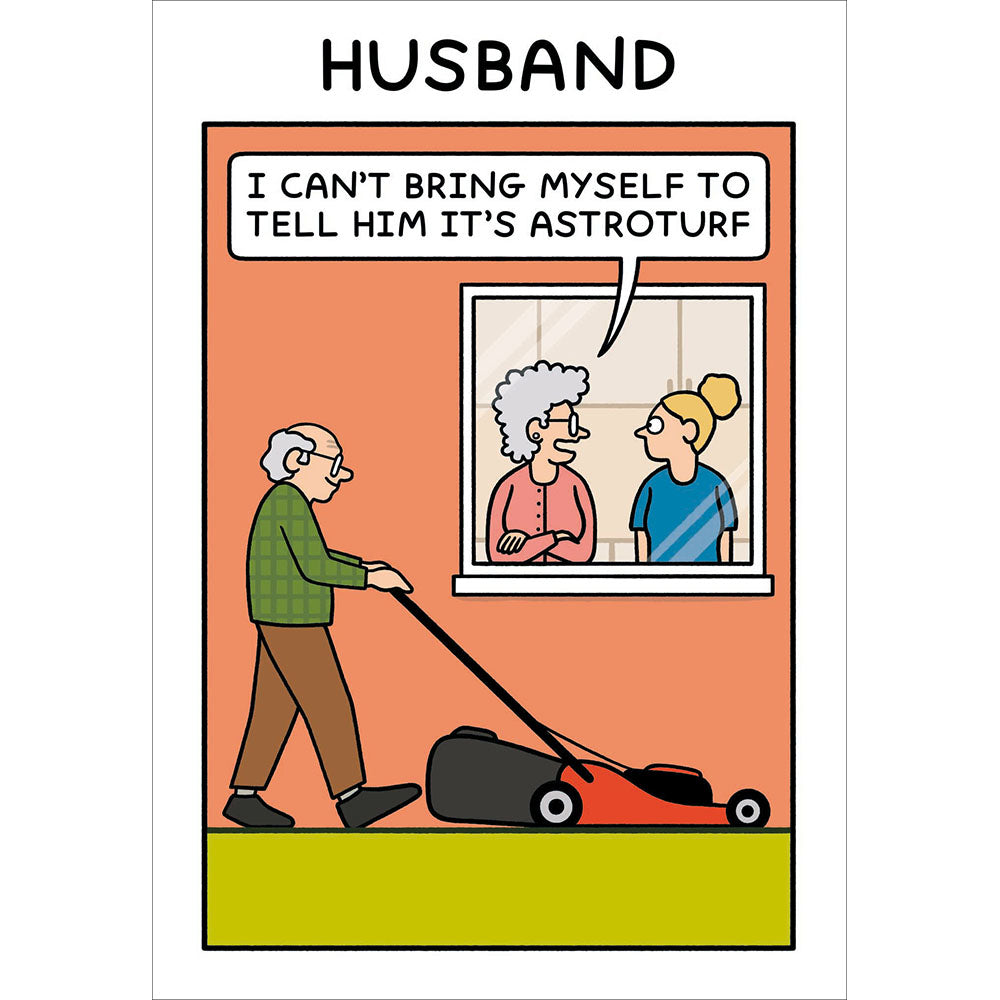 - Front reads: Husband - "I Can't Bring Myself To Tell Him It's Astroturf"