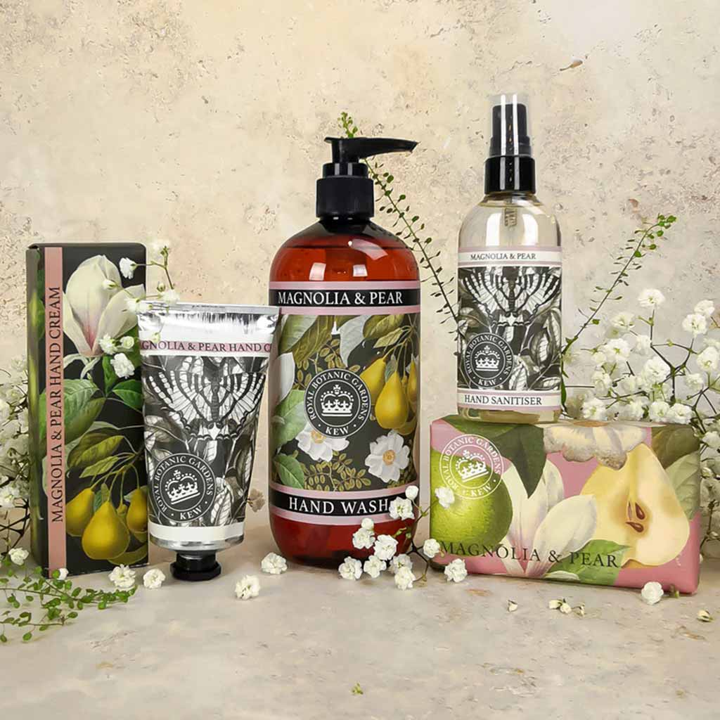 The Kew Gardens Magnolia and Pear Soap is one of the exclusive soap bars in the Kew Gardens Collection. A generously sized 240g bar that is long-lasting and enriched with moisturising shea butter and vegetable glycerine to nourish and care for the skin. The paper wraps are printed with beautiful illustrations inspired by the plants, from Kew’s historical archives.