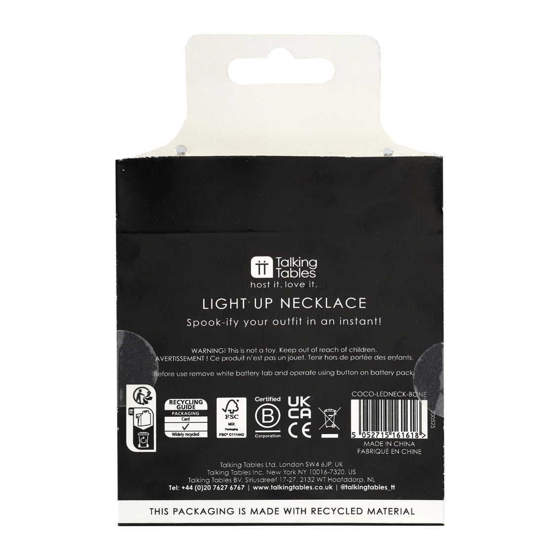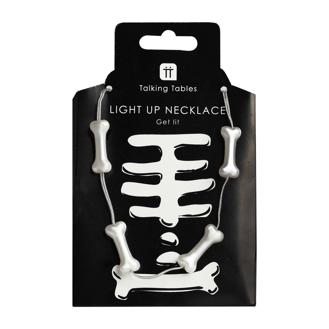 Get lit this Halloween with our glowing skeleton necklace. Featuring a string of bright white bone lights, it’s perfect for trick-or-treating, spooky parties or making sure you’re seen in the dark. Lightweight and battery-operated, it’s an easy win for costume upgrades or creepy accessories.