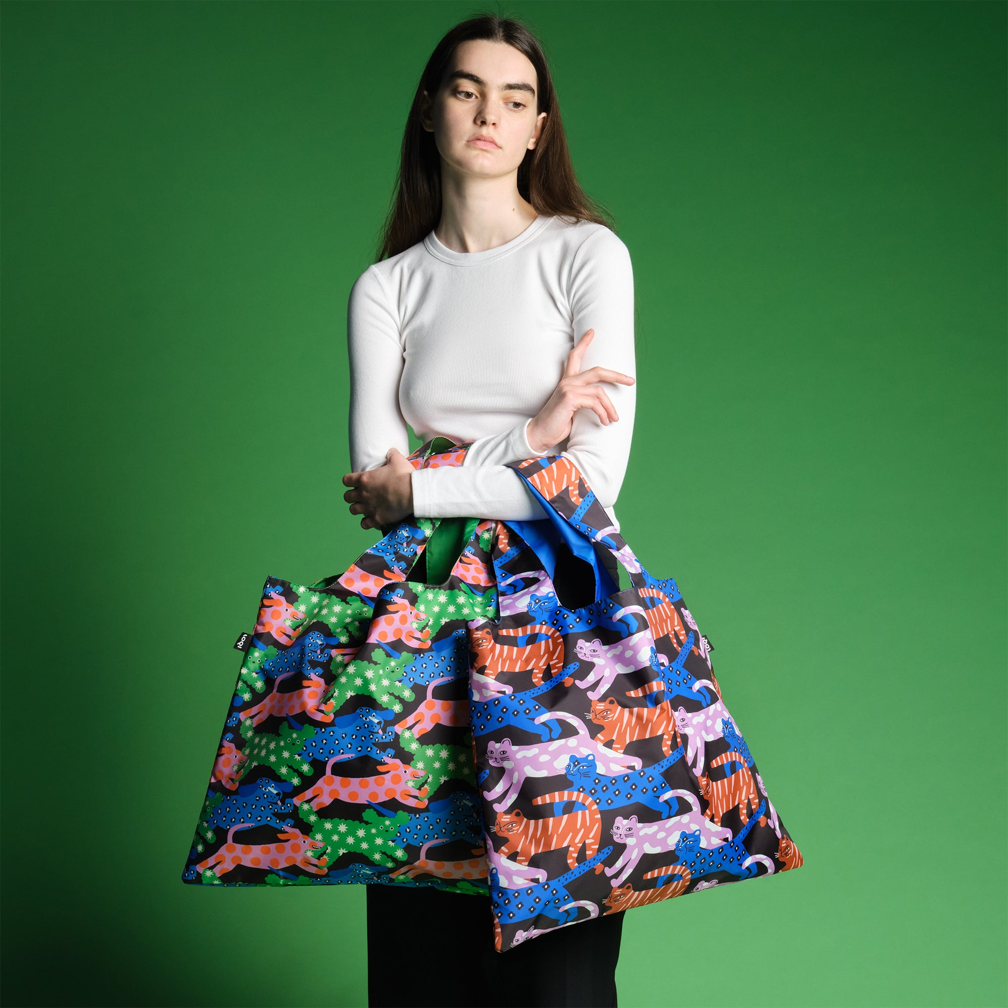 Vibrant canine designs meet sustainability in this playful, eco-friendly bag—perfect for cat lovers with a bold sense of fun. Whether leopard or spots, we’ve got your dog style covered with this recycled bag!