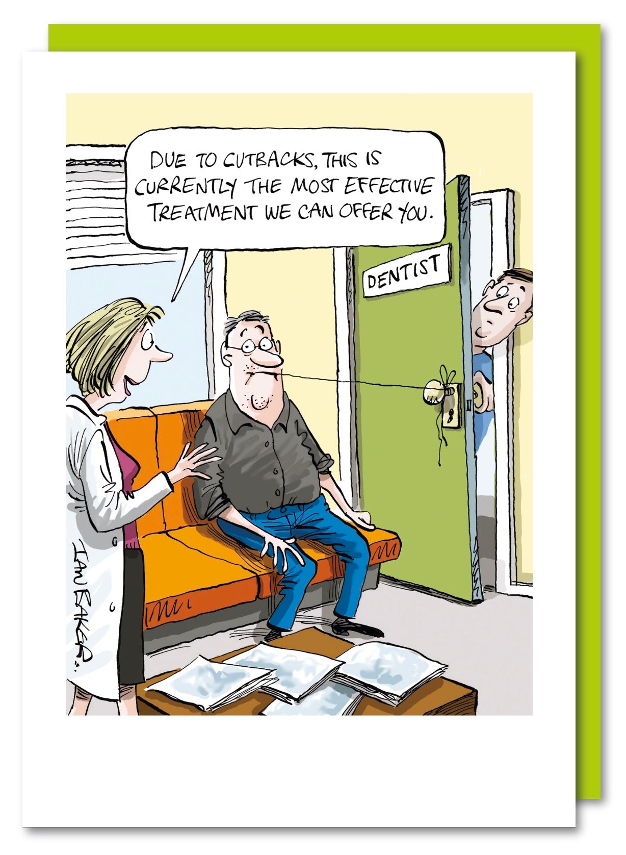 • Front reads: Due To Cutbacks, This Is Currently The Most Effective Treatment We Can Offer You.