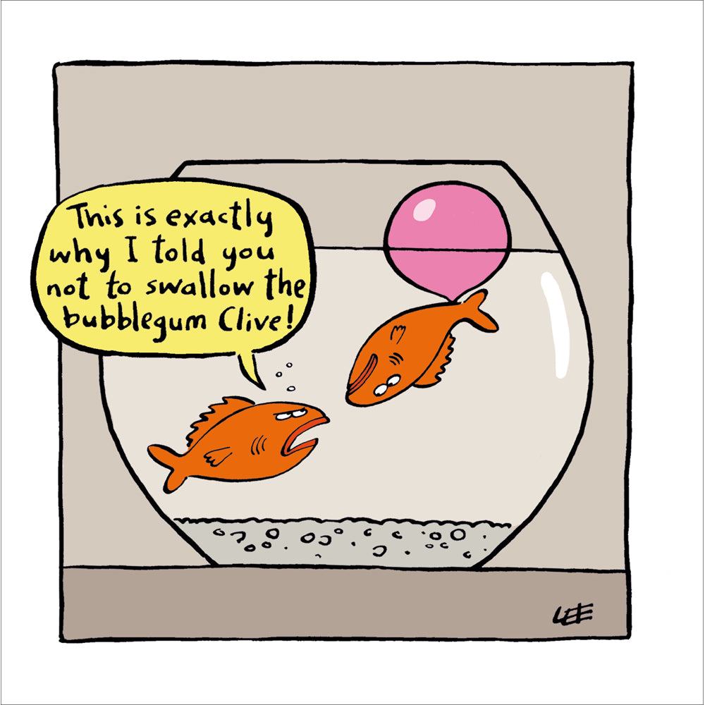 - Message on front: This is exactly why I told you not to swallow the bubblegum Clive!
