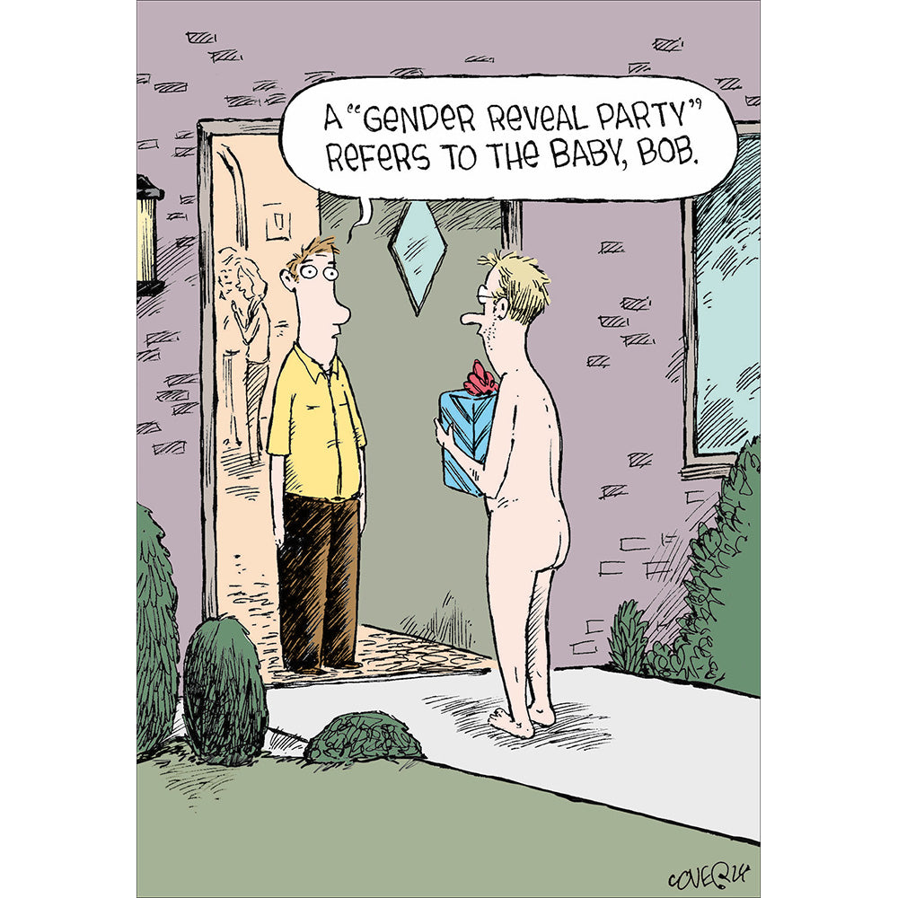 - Front reads: A "Gender Reveal Party" Refers To The Baby, Bob.