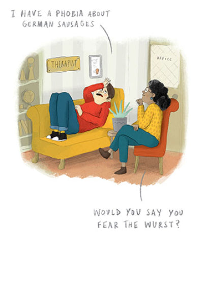 • Front reads:  I Have a Phobia About German Sausages.  Would You Say You fear the Wurst?