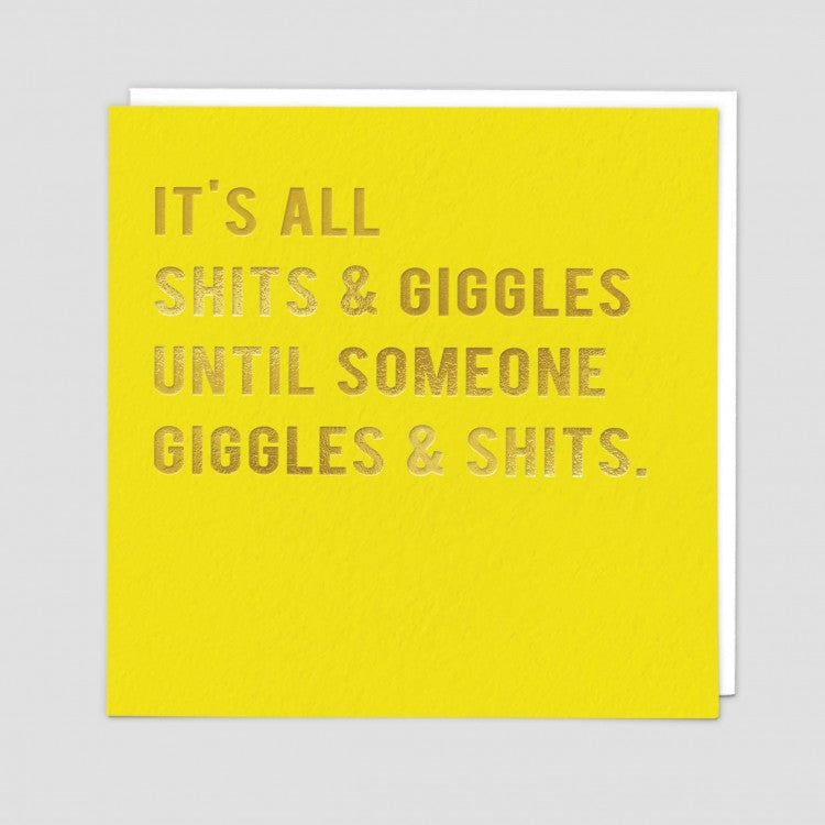 - Front reads: It's All Shits & Giggles Until Someone Giggles & Shits