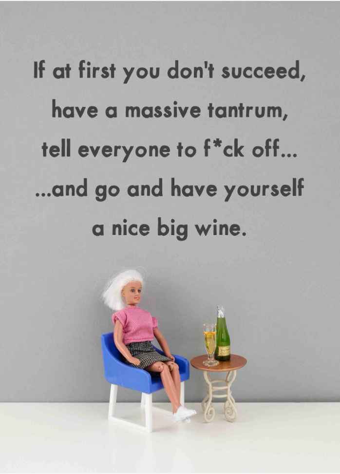 Reads: If at First You Don't Succeed, have a massive tantrum and tell everyone to f*ck off and go and have yourself a nice glass of wine
