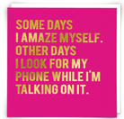 - Front reads: Other Days I Look For My Phone While I'm Talking On it