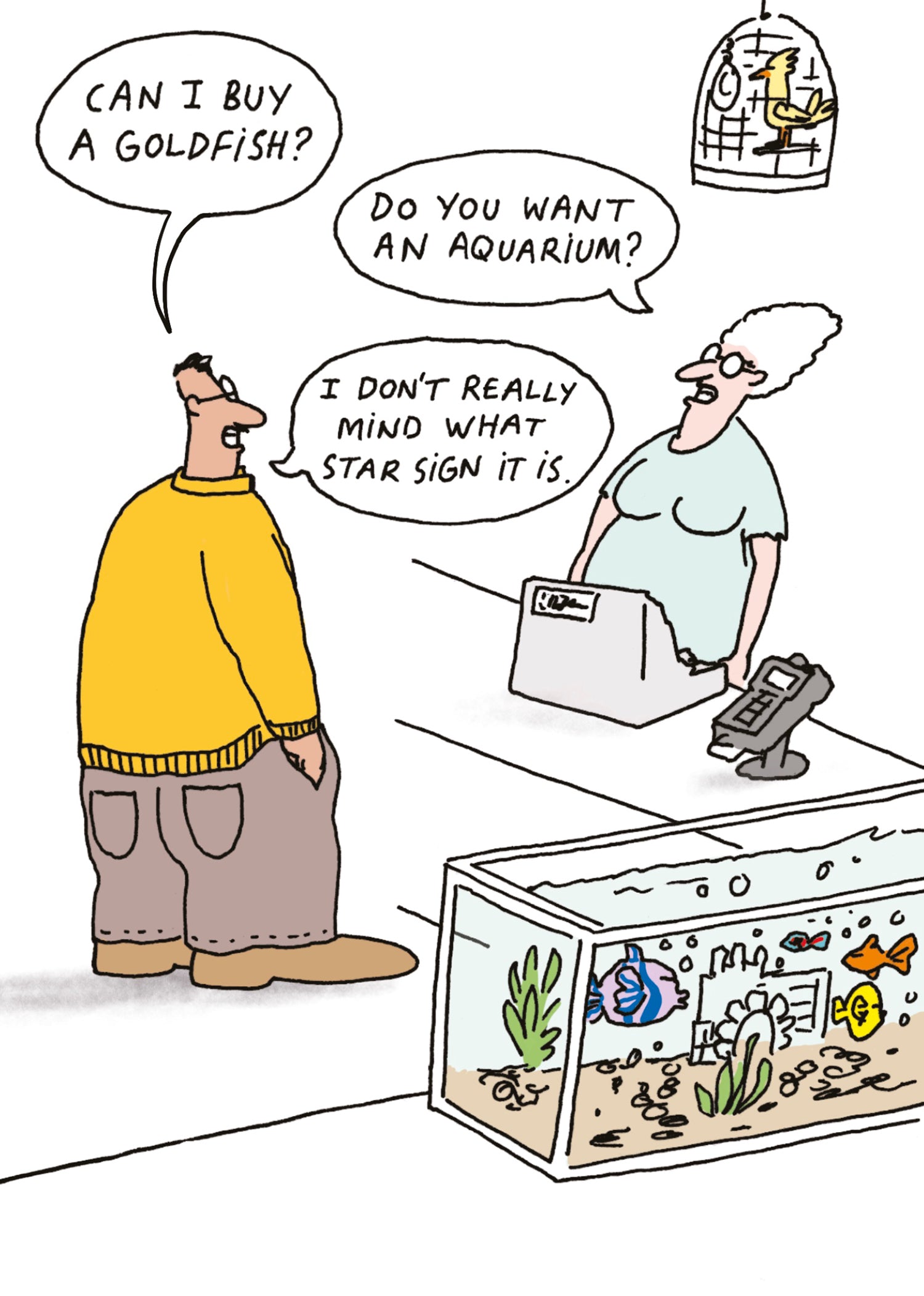 - Front reads: Can I Buy a Goldfish? Do You Want an Aquarium? I Don't Really Mind What Star Sign It Is