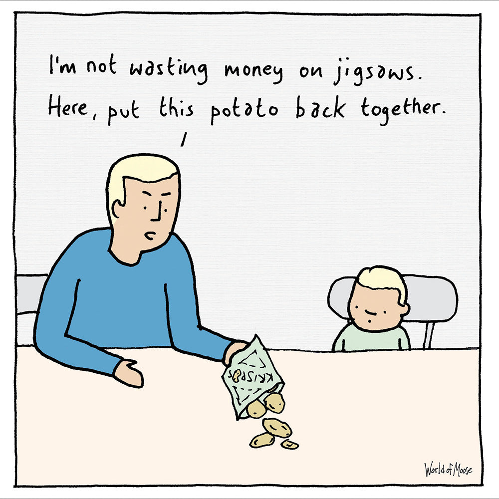 - Front reads: I'm not wasting money on jigsaws. Here, put this potato back together.