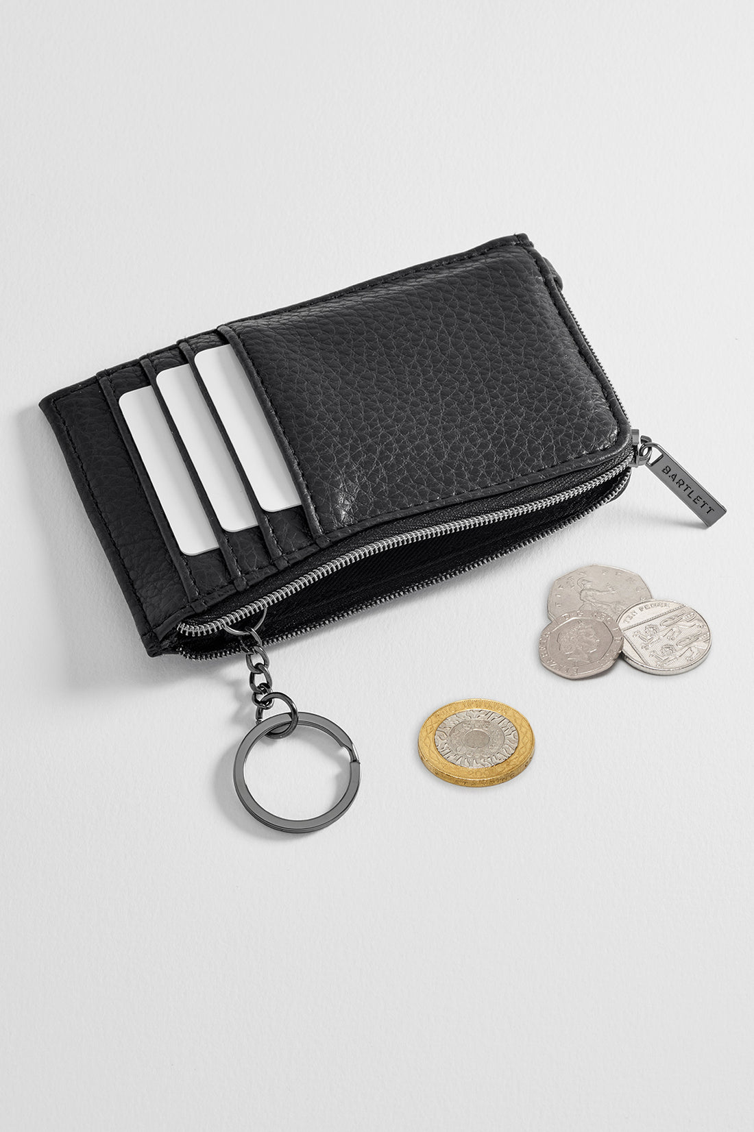 Mens Zipped Card Holder has space for your most used cards, plus a central storage compartment kept safe by a secure, sleek zipper. Designed in sleek black and printed with the Bartlett logo