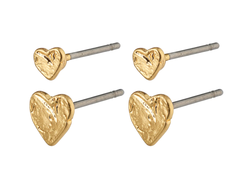 Pilgrim Sophia Heart Stud Gold-Plated Earrings 2-in-1 Set