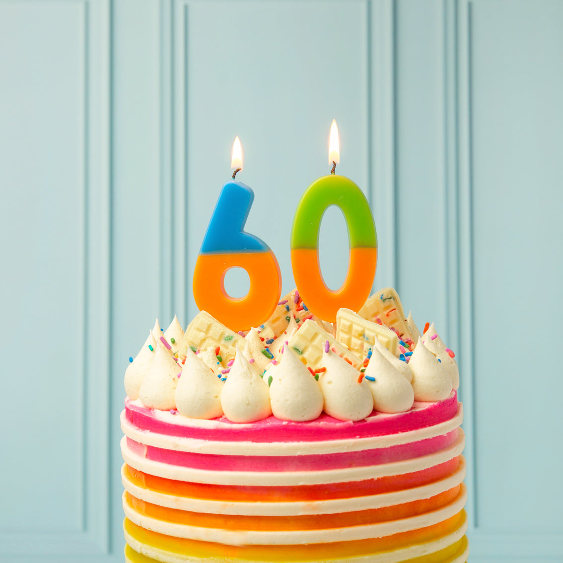 Chunky brightly coloured number candle - great for a birthday or anniversary!