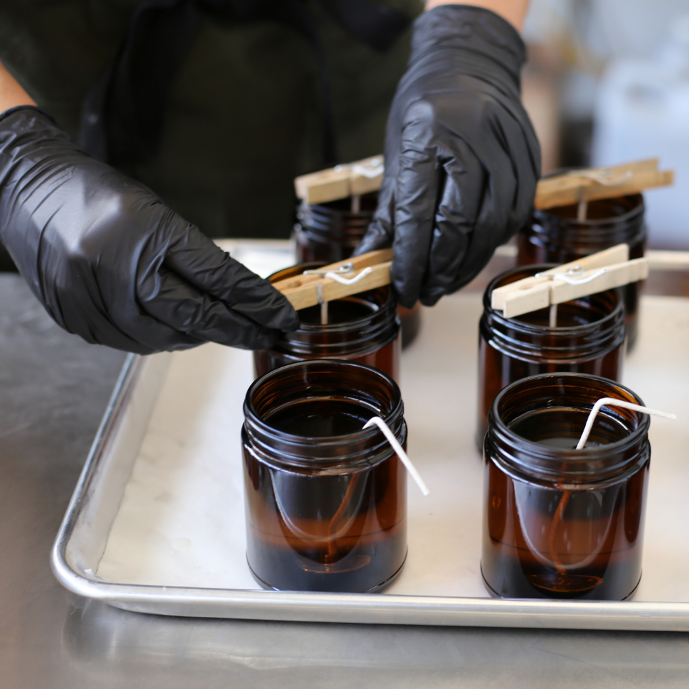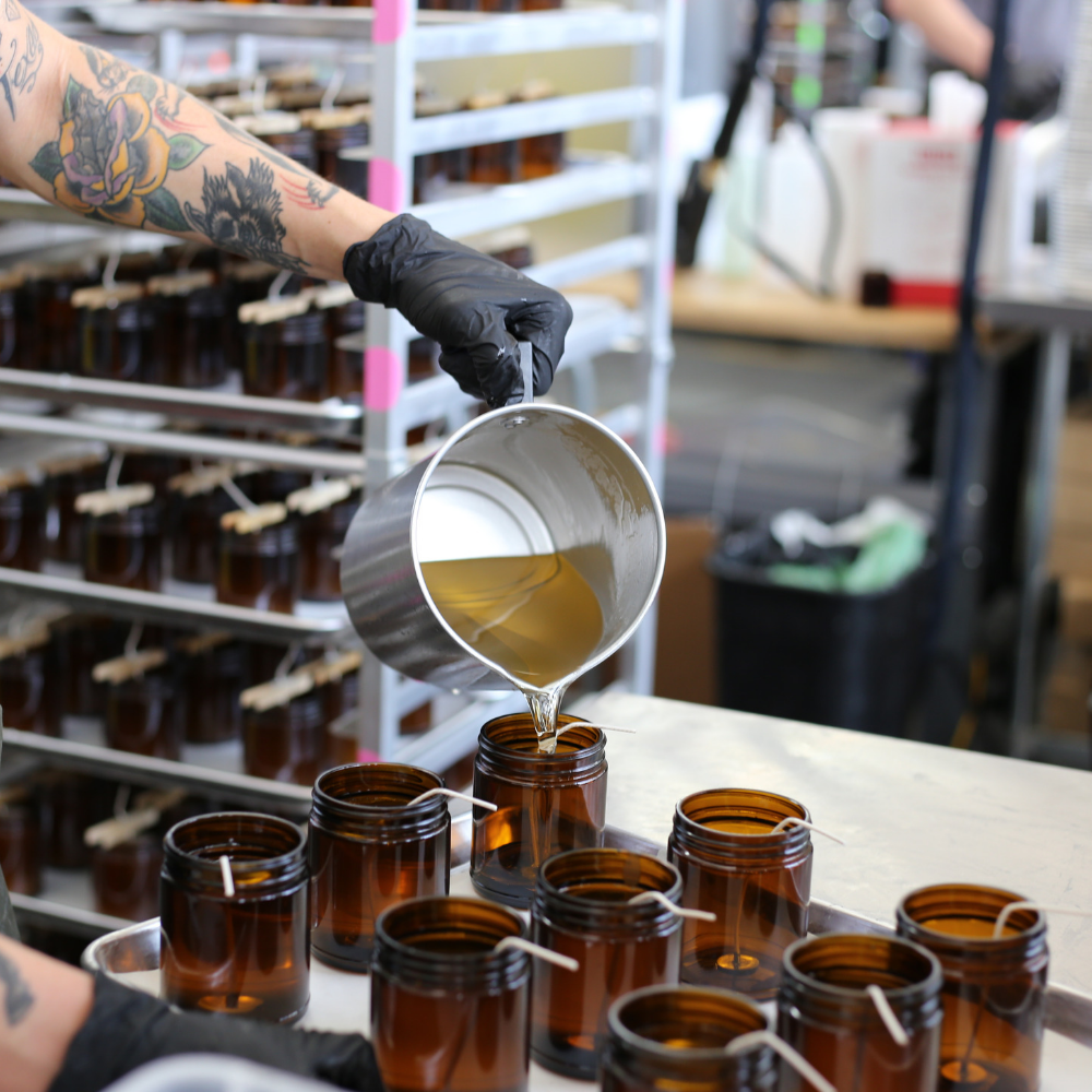 P.F. Candle's standard soy candles are hand-poured into apothecary inspired amber jars - which is perfect to be reused.