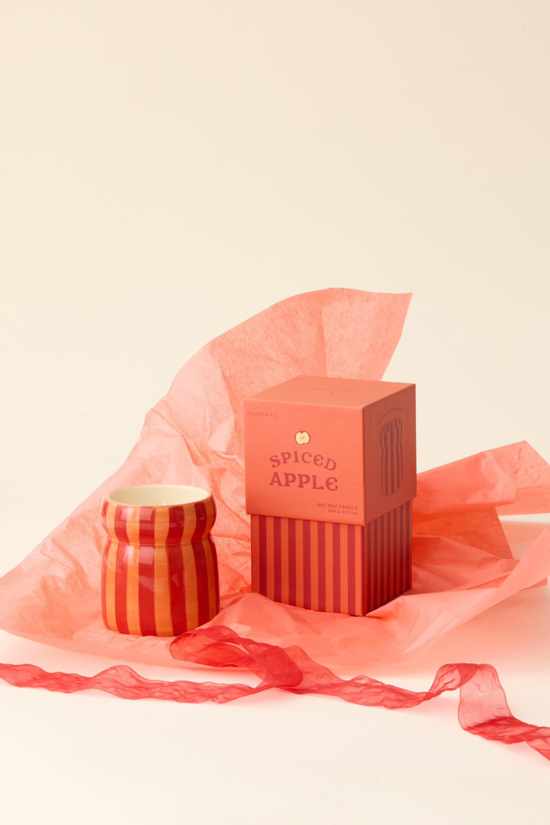 Paddywax Cabana Spiced Apple Striped Ceramic Candle