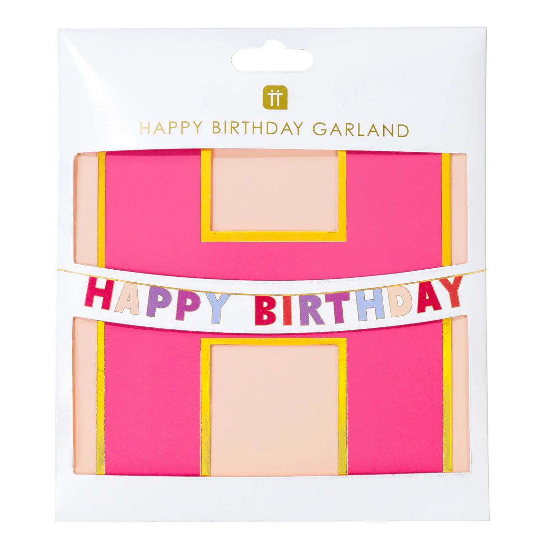 Decorate your home, office or garden with Talking Tables' rose pink coloured Happy Birthday Garland. This paper garland with gold foil detail will brighten up any birthday celebrations.